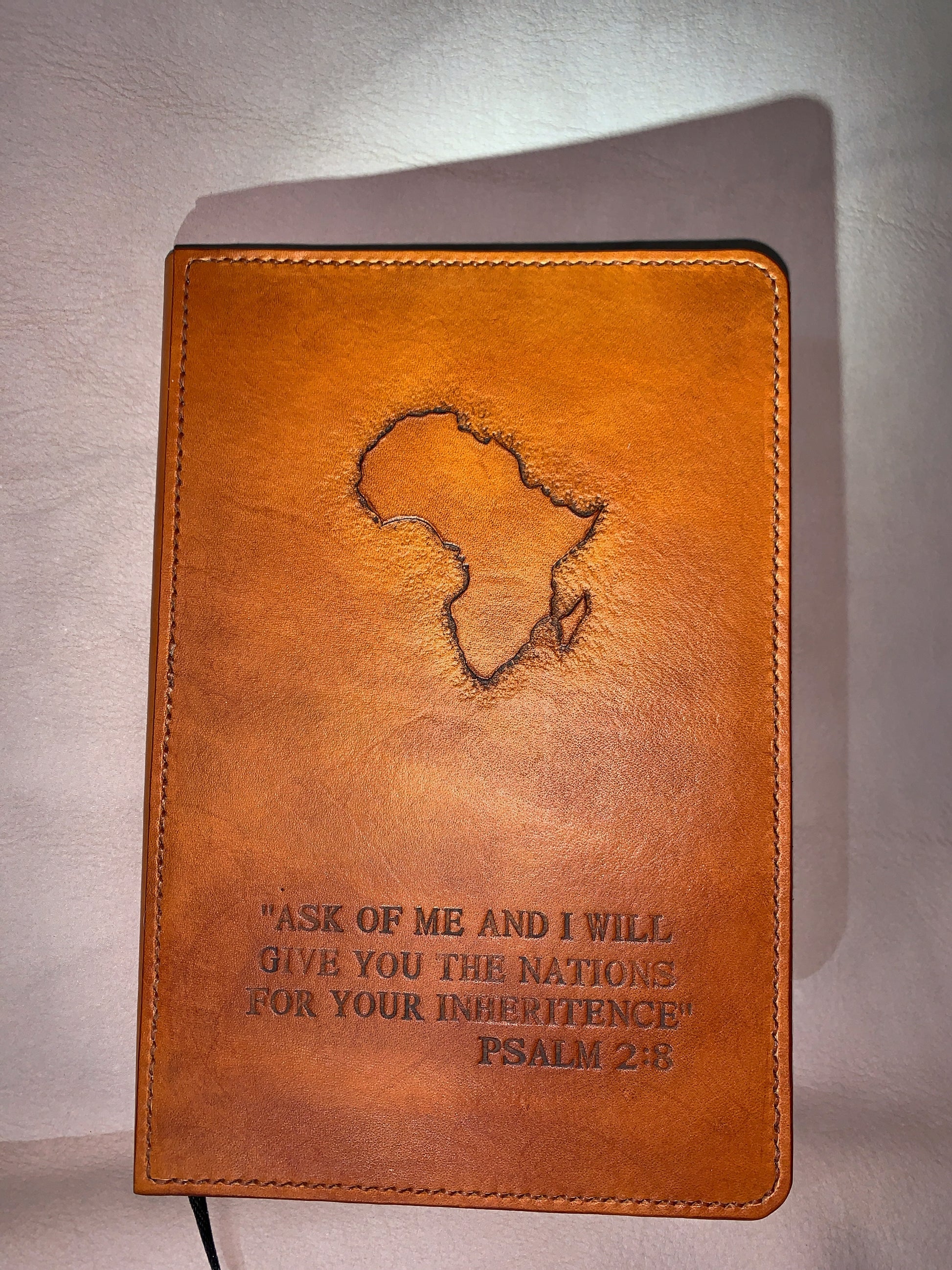 It is made from a wonderful vegetable tanned leather, hand carved, hand stained, hand stitched with heat stamped lettering. The journal cover is lined, includes a business card pocket and measures roughly six inches by nine inches.