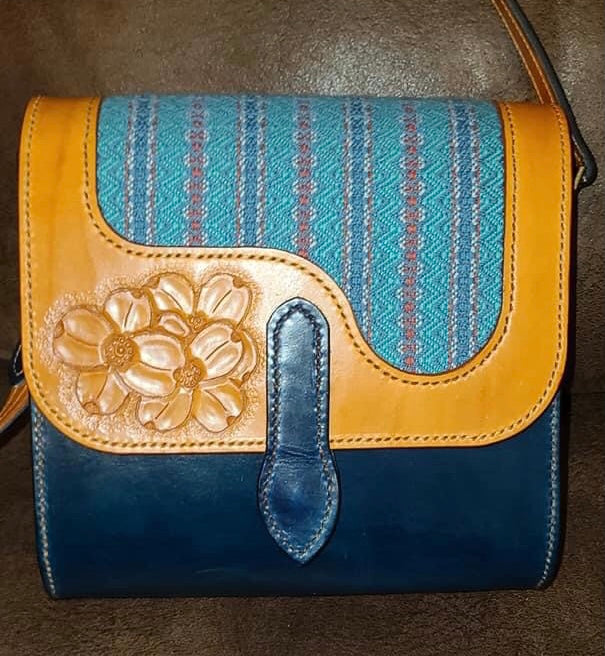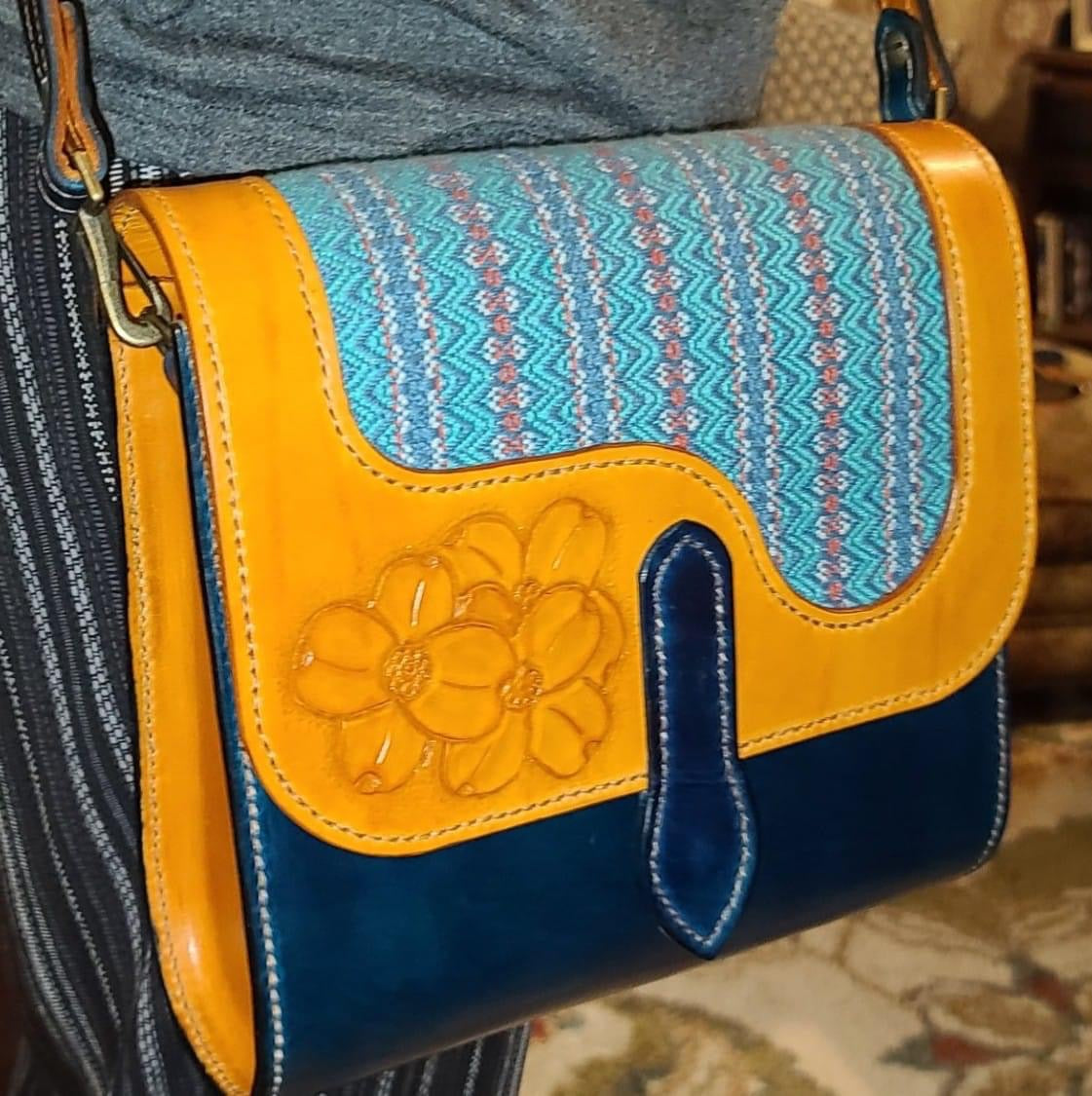 Blending media from different heritage disciplines, we inset a hand woven fabric into the front flap. You need to contact us to select the fabric for your crossover to create a one of a kind keepsake.